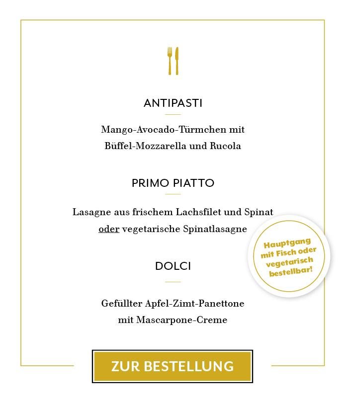 Genießen Sie zu Weihnachten typische italiensiche Zutaten, in Kombination mit frischen Produkten unserer regionalen Erzeuger. Die KochKiste Gourmet "Bella Italia" bietet Ihnen Zutaten für ein köstliches 3-Gänge-Menü für vier Personen. Unser Fahrer liefert die Kochkiste Gourmet bis an die Haustür. Nur noch auspacken, beigelegte Rezepte studieren und in Ruhe mit Partner, Familie oder Freunden das Menü zubereiten.
