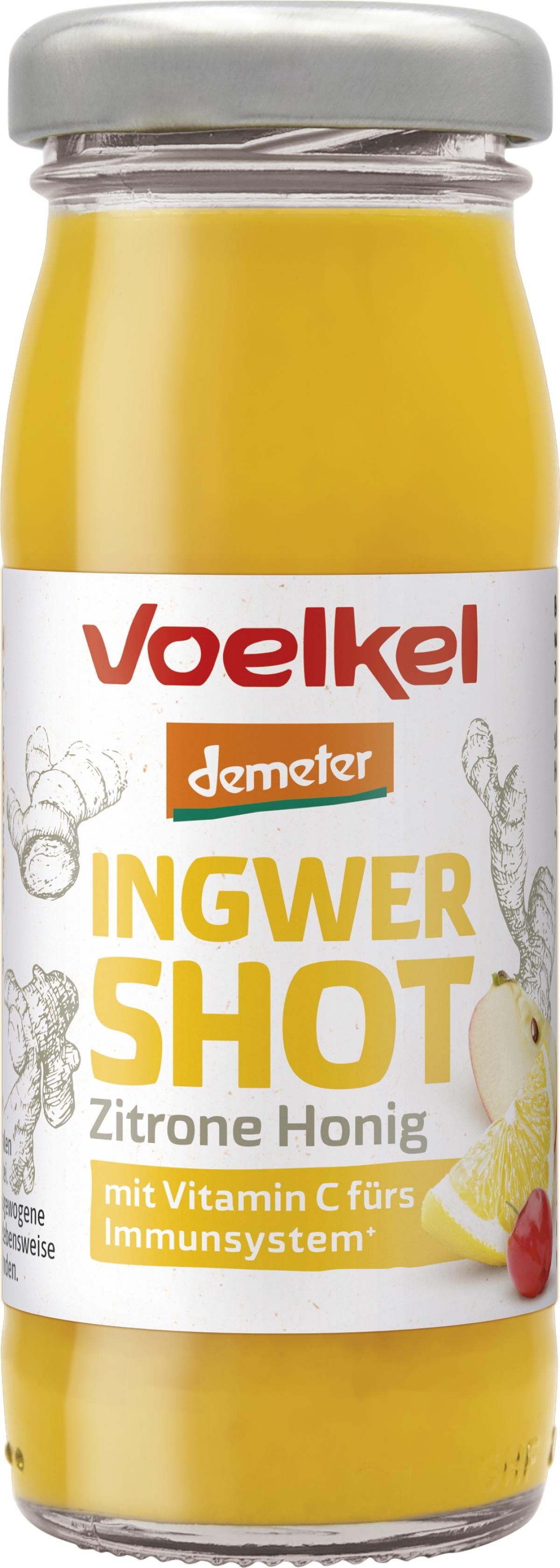 Der Voelkel Ingwer Shot Zitrone & Honig kickt mit reichlich natürlichem Vitamin C aus der Acerolakirsche und dem Geschmack von fair gehandeltem Ingwer, fruchtiger Zitrone und feinem Honig. Hergestellt aus hochwertigen Demeter-Zutaten.