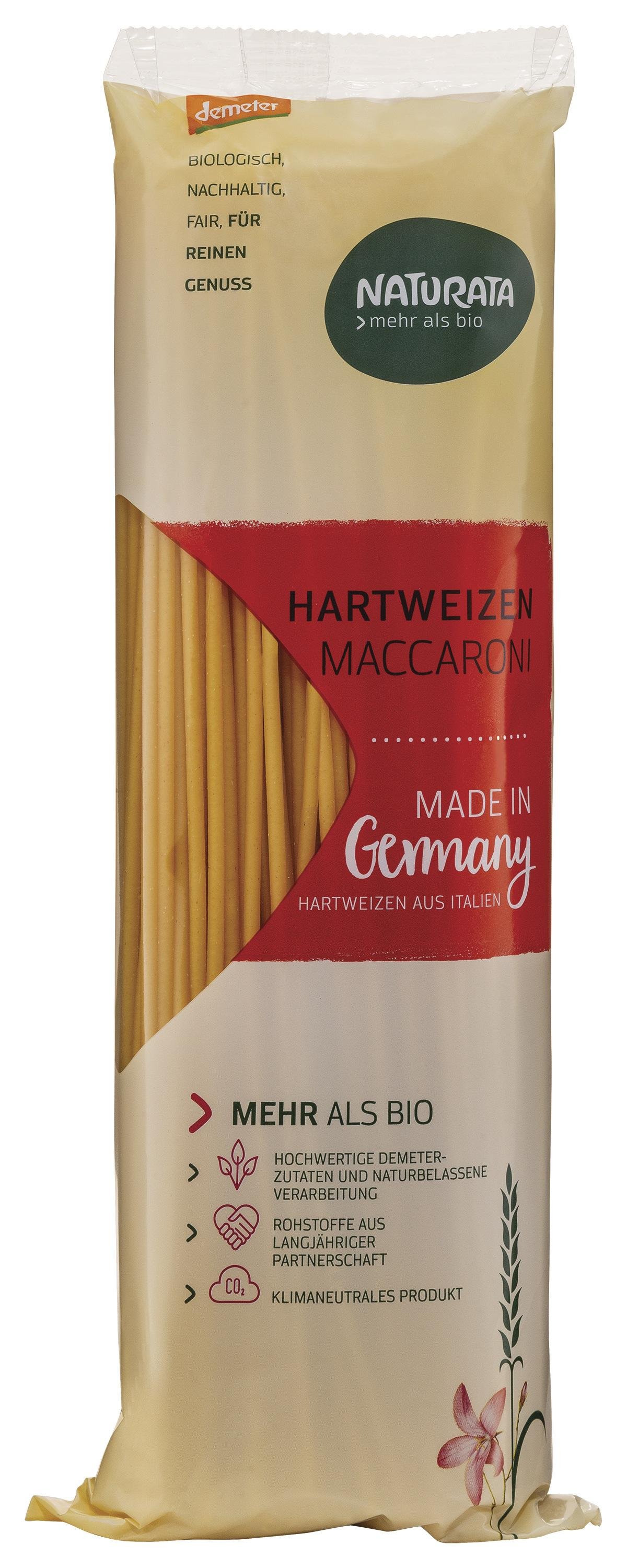 weniger anzeigenFür die Naturata Hartweizen-Teigwaren wird 100 % Durum demeter-Hartweizen von biodynamisch arbeitenden Landwirten im italienischen Piemont verwendet. Hartweizen ist ein idealer Rohstoff für Teigwaren, die auch als italienische Pasta bekannt sind. Das Mittelmeergebiet ist aufgrund der Wärme und des geringen Niederschlags optimales Anbaugebiet für Hartweizen. Seit über 30 Jahren bezieht Naturata den Hartweizen von diesen Landwirten und garantiert feste Abnahmemengen und faire Preise. Die schonende Verarbeitung und beste biodynamisch erzeugte Rohstoffe geben den Naturata-Teigwaren den typisch guten Biss und optimale Kocheigenschaften. Naturata kompensiert gemeinsam mit myclimate die CO2-Emissionen, die bei der Herstellung und dem Transport von Nudel und Verpackung entstehen.