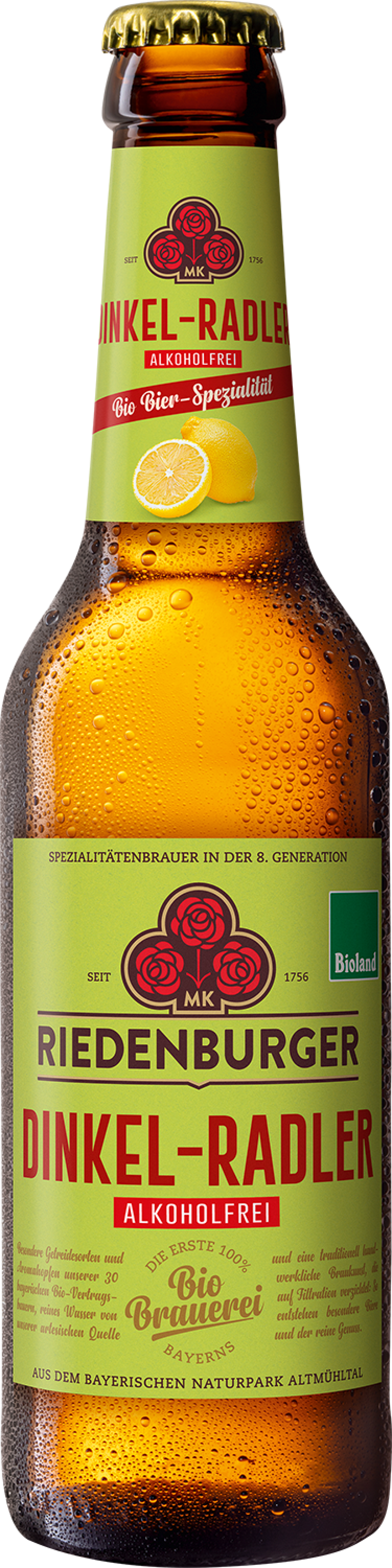 Dinkel trifft auf Zitrone: Hellgelb und bedeckt von einem feinen Schaum präsentiert sich dieses alkoholfreie Radler im Glas. Es duftet nach Zitrone und Sommergetreide. Der Geschmack ist leicht malzig und dank Agavendicksaft angenehm fruchtig. Regionaler Bio-Hopfen verleiht diesem Biermischgetränk eine zarte Bittere.