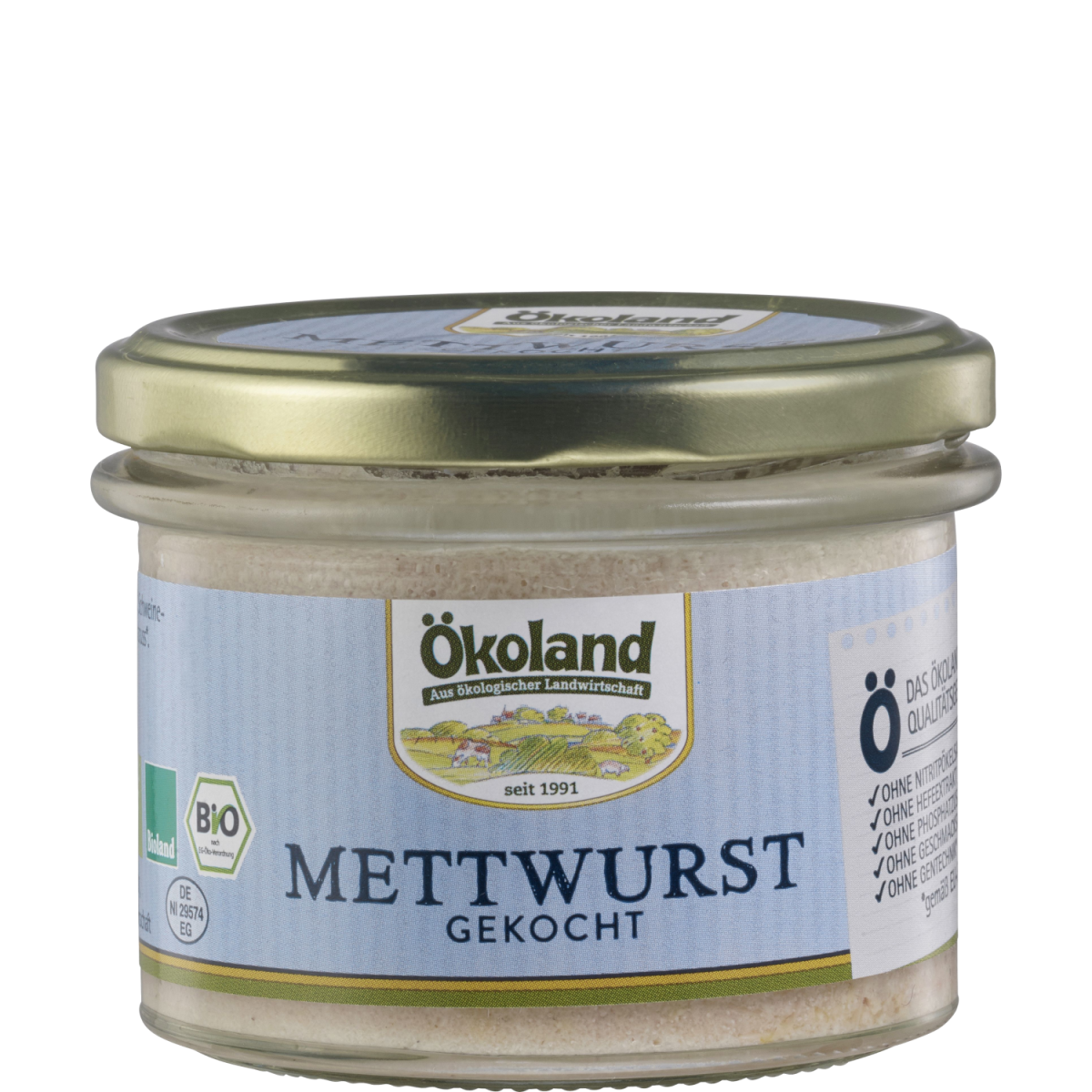 Die Ökoland Mettwurst ist eine traditionelle Wurst-Spezialität aus hochwertigem Bio-Schweinefleisch in Gourmet-Qualität. Die feine Struktur und die ausgewählten Gewürze sorgen für den unverwechselbaren Geschmack, wie früher bei Oma und Opa. Im praktischen Zylinderglas leicht entnehmbar.
