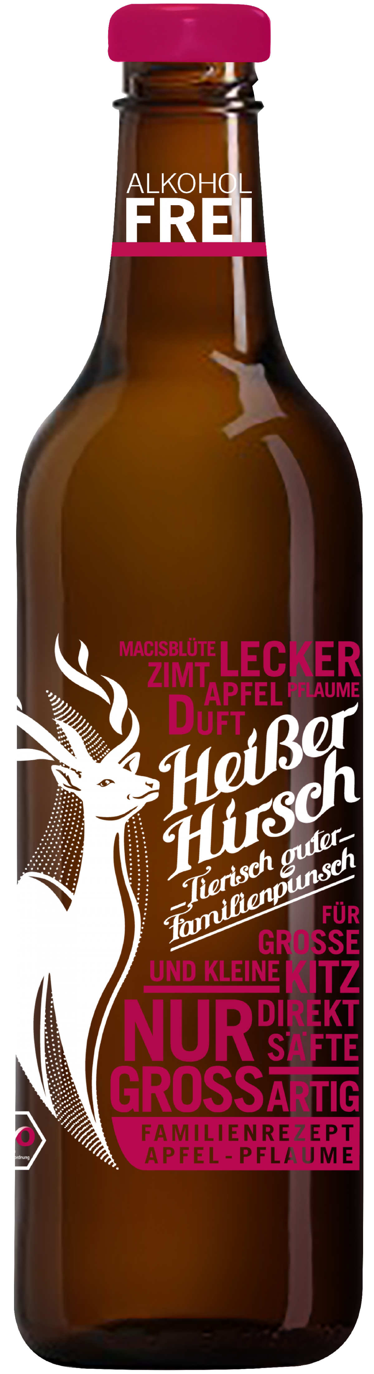 Die alkoholfreie Variante für das ganze Rudel Für das Familienrezept ,,Apfel-Pflaume´ werden 100% naturtrübe Direktsäfte verwendet. Äpfel von Streuobstwiesen, roten Trauben, Pflaumen und Aronien. Auch hier werden zum Verfeinern ausschließlich natürliche BIO-Gewürzextrakte verwendet - Zucker wird keiner zugesetzt. Zimt, Nelken, Kardamom, Piment, Macisblüten, Orangen- und Zitronenschalen verbreiten winterlichen Duft im Heimatrevier.