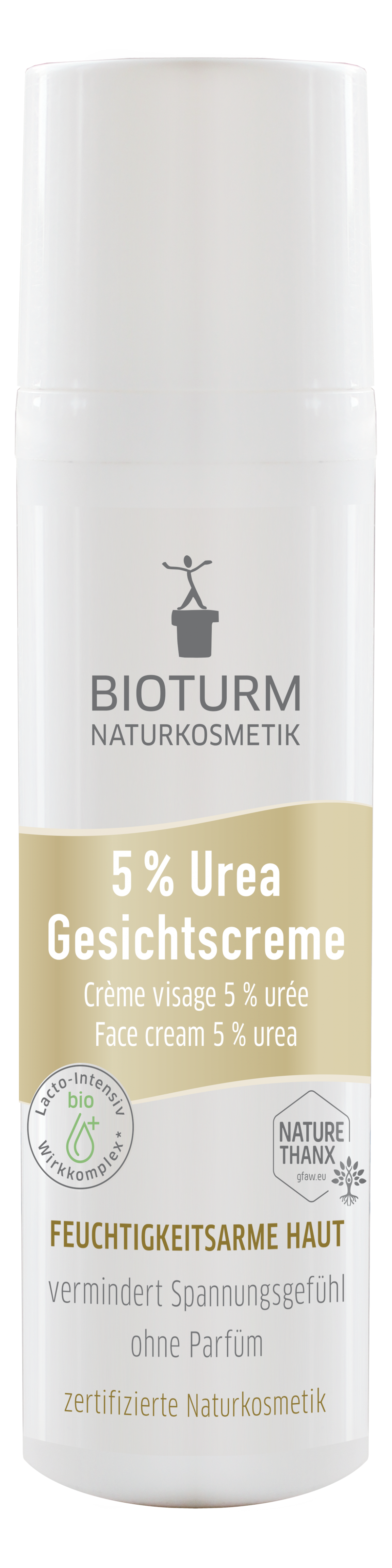 Urea kommt als natürlicher Feuchthaltefaktor auf der gesunden menschlichen Haut vor. Bei extrem trockener Haut, Neurodermitis und Psoriasis ist der Urea-Gehalt der Haut stark herabgesetzt und die Haut kann nicht so viel Feuchtigkeit in sich binden, wie es die gesunde Haut kann. Daher kann mit der BIOTURM 5 % Urea Gesichtscreme Nr.7 der fehlende Anteil an Urea der Haut wieder zugeführt werden und sorgt zusammen mit unserem Lacto-Intensiv Wirkkomplex für eine intensive Pflege.