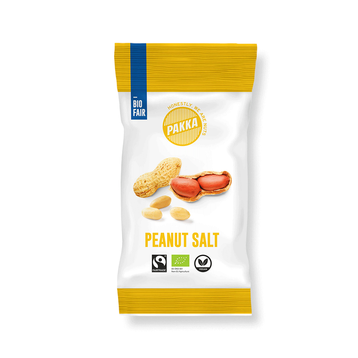 Pakka; Erdnüsse Bio mit Salz; Erdnüsse gesalzen; Pakka Erdnüsse mit Salz; Erdnüsse salzig; Bio Erdnüsse; Bio Fairtrade Erdnüsse; bio fair Erdnüsse