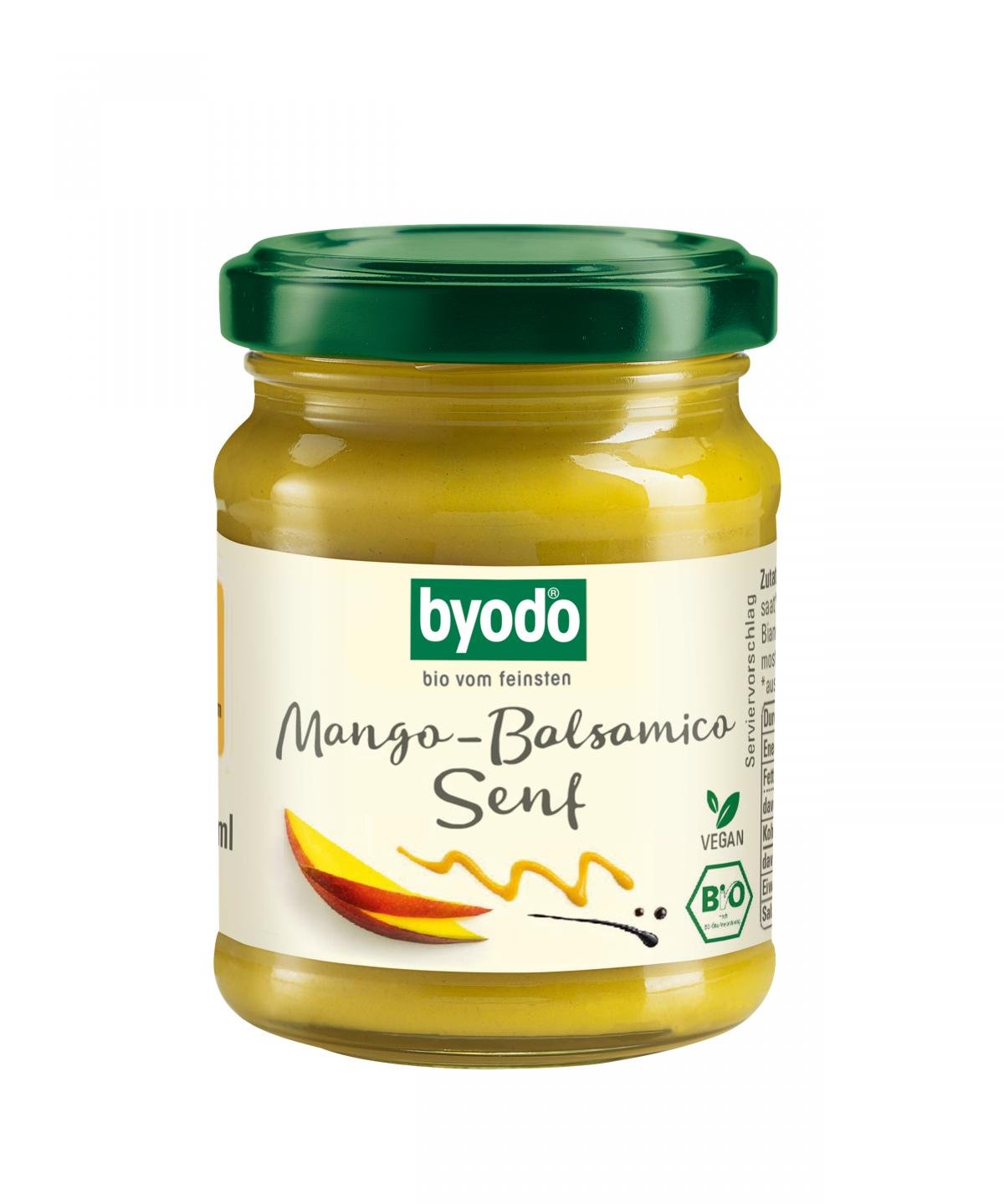 17% fruchtiges Mango-Püree und milder Byodo Condimento Bianco aus Italien vereinen sich in dieser Spezialität mit einer feinen Senfnote. Heraus kommt ein herrlicher Senf, der wunderbar Dressings verfeinert und zu Hartkäse ein wahrer Genuss ist. Auch in Dips und asiatischen Fisch- und Fleischgerichten mit Kokosmilch ist der Byodo Mango-Balsamico-Senf unverzichtbar.