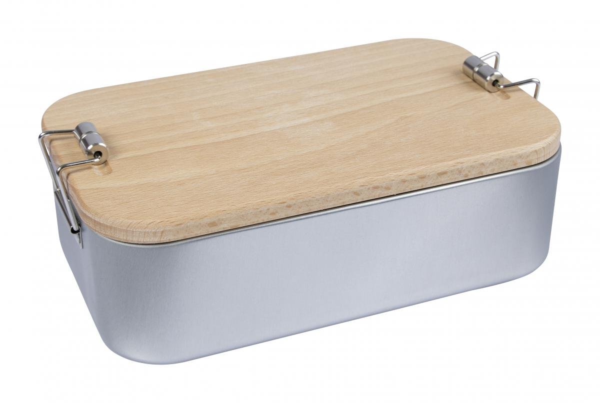 Diese innovative Lunchbox bewahrt die Lieblings-Snacks und das Pausenbrot nicht einfach nur auf, nein, sie bringt auch gleich einen Teller mit! Die Vesperdose aus Weichblech hat einen abnehmbaren Deckel aus FSC-zertifiziertem Buchenholz, der als Brotzeitbrettchen verwendbar ist. Das spart Platz beim Transport und ist unglaublich praktisch. Damit der Inhalt stets optimal geschützt ist, fixieren zwei Klammerverschlüsse an den Schmalseiten den Deckel. Brote, Gemüse- und Obstschnitte bleiben so lange frisch und schmecken den ganzen Tag lang lecker. Die 2-in-1 Lunchbox ist perfekt für die Schule, Sport, Campingausflüge oder den Beruf. Die kunststofffreie Dose ist nicht nur unterwegs nutzbar: auch im Kühlschrank oder im Küchenregal bewahrt sie Lebensmittel auf! B 20 x T 12 x H 6,5 cm.