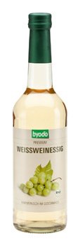 Der Bio-Weißweinessig von Byodo schmeckt harmonisch-intensiv und hat eine nahezu klare Farbe. Feiner österreichischer oder italienischer Tafelwein werden dafür bei angenehm warmen Temperaturen langsam zu Essig vergoren. Dieses Verfahren nennt man die kontinuierliche Essigvergärung. Vor der Abfüllung wird der naturbelassene Bio-Essig nur noch gefiltert. Mit seinem intensiven Geschmack passt er wunderbar zu kräftigen Salaten, eignet sich aber aber zum Einlegen von Gemüse ganz hervorragend.