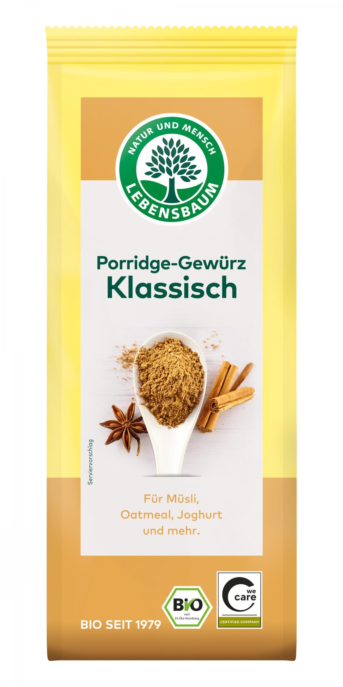 Mahlzeit des Tages? Mit unserem klassischen Porridge Gewürz wird sie gewiss zur leckersten: Zimt, Apfel und Anis geben Porridge, Müsli oder Joghurt eine würzig-süße Note - bewusst ohne Zuckerzusatz. So können Sie nach Belieben nachsüßen.