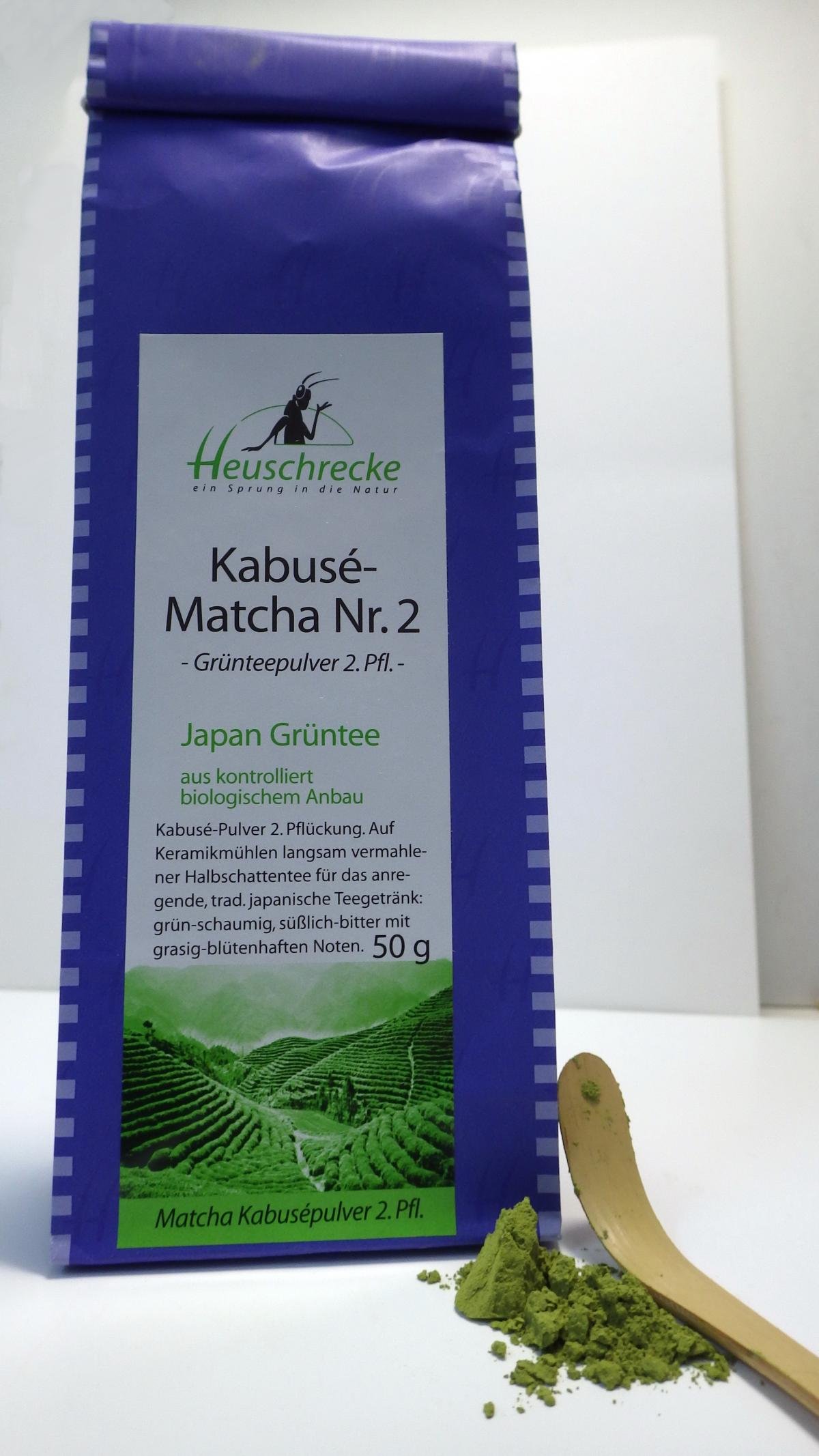 Teezubereitung: Matchaschale (oder Müslischale) mit heißem Wasser vorwärmen. Ca. 1 gestr. TL Pulver hineingeben. 70-100ml gekochtes Wasser auf 70-85°C abkühlen und auf das Pulver gießen. Mit dem Bambusbesen (alternativ kleiner Schneebesen) schlagen, bis ein feiner Schaum an der Oberfläche entsteht. Zu diesem intensiv-bitteren Tee isst man ´Teesüßigkeiten´, z.B.: Marzipan.