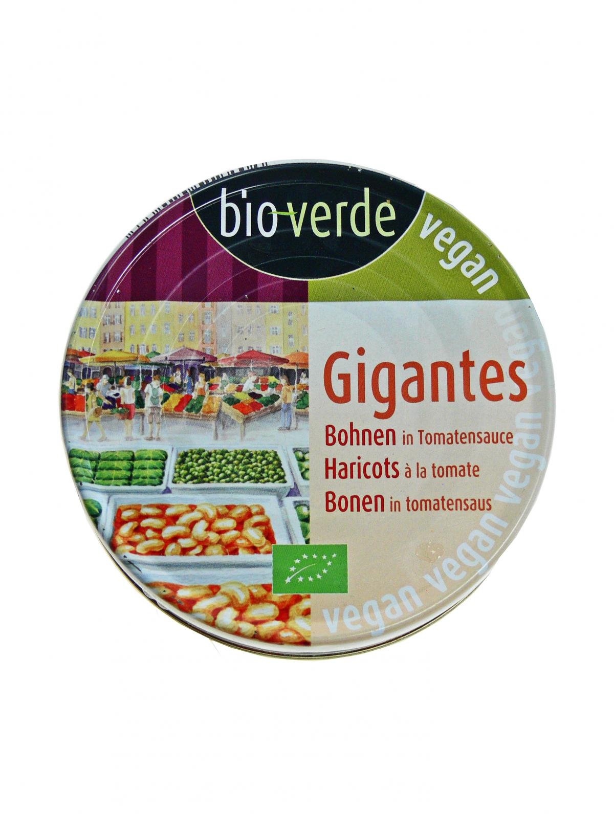 Gigantes von bio-verde sind Riesenbohnen, die in einer aromatischen Zwiebel-Tomaten-Sauce eingelegt sind. Es handelt sich dabei um eine besondere Delikatesse aus Griechenland.