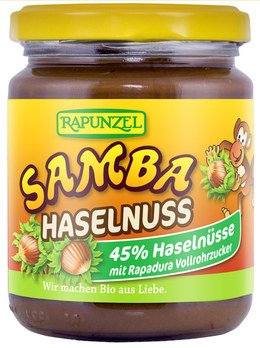 Starten Sie mit Samba schwungvoll in den Tag! 45 % aromatisch geröstete Haselnüsse lassen das Herz eines jeden Nuss-Fans höher schlagen. Zusammen mit edlem Kakao, Allgäuer Vollmilch und wertvollem Rapadura Vollrohrzucker werden sie zum zart schmelzenden Samba verarbeitet. Ein Hauch echter Bourbon Vanille rundet den Geschmack der wertvollen Zutaten ab. Rapadura Vollrohrzucker, Cristallino Rohrzucker, Palmöl und Kakaopulver sind fair gehandelt und stammen von unseren HAND IN HAND-Partnern. Die Konsistenz ist temperaturabhängig. Bei Zimmertemperatur cremig, im Kühlschrank gelagert fest.