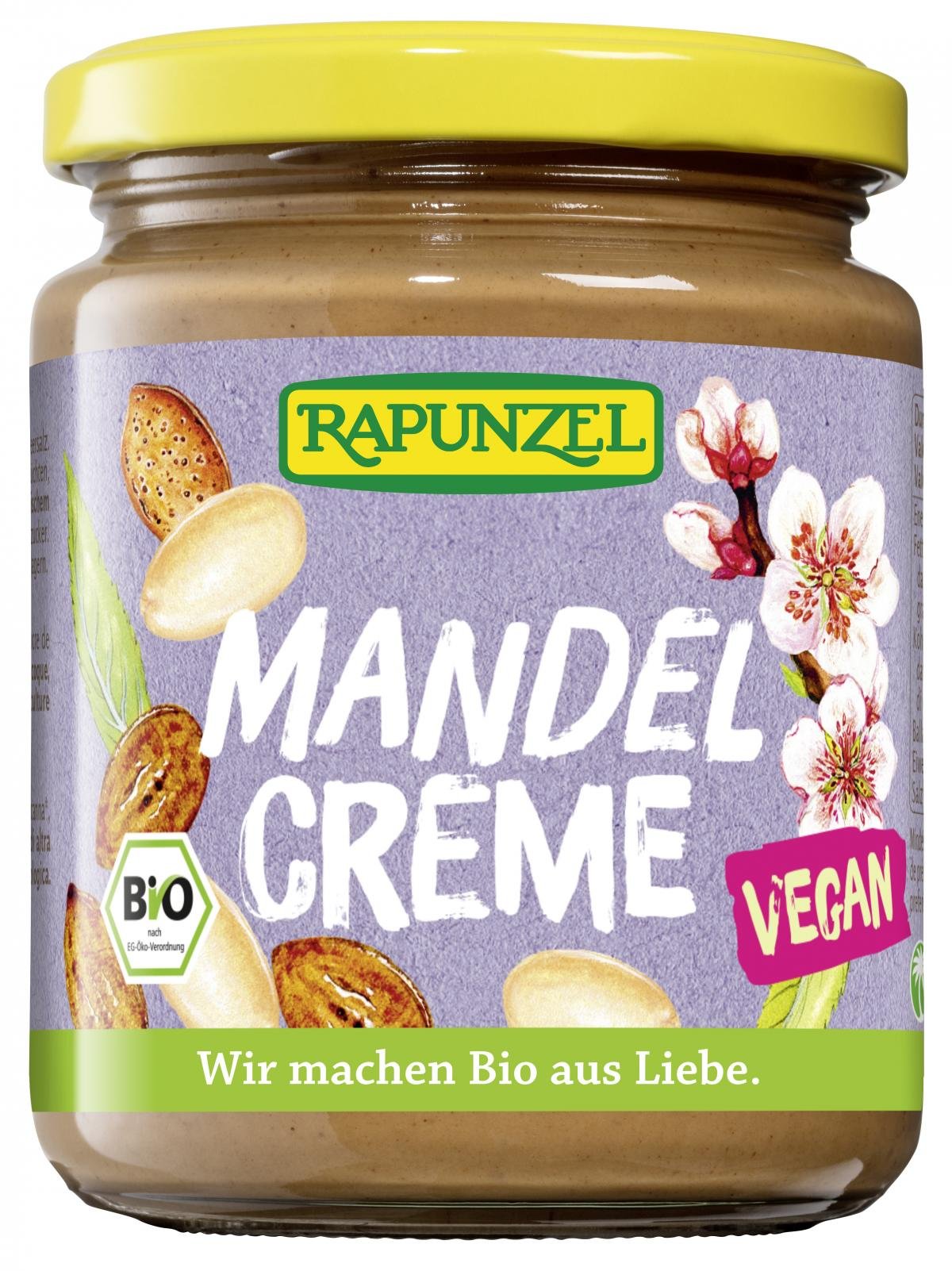 Ausgesuchte Mandeln werden frisch im Hause Rapunzel geröstet und mit erlesenen Zutaten zu einer zart schmelzenden Creme verarbeitet.