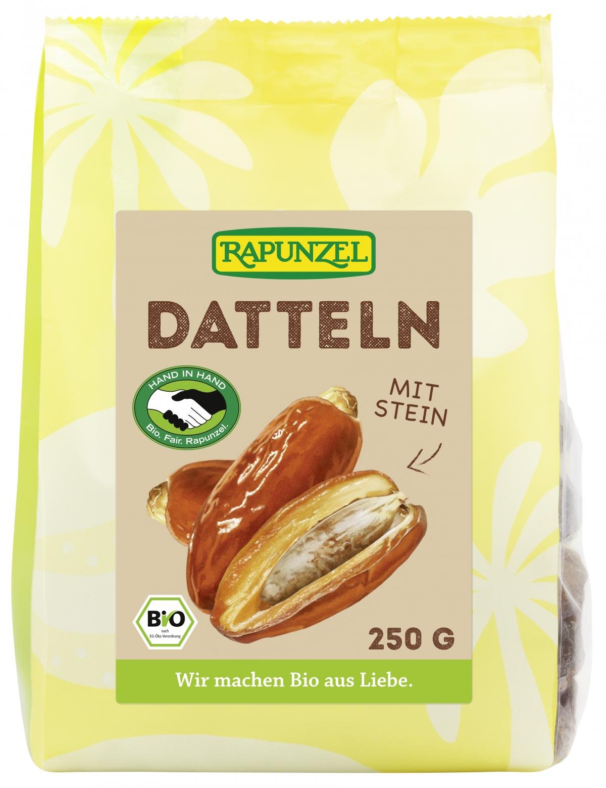 Datteln der Sorte ´Deglet Nour´ gelten als die Königin der Datteln. Die goldenen bis bernsteinfarbenen Früchte haben ein besonders saftiges, bissfestes Fruchtfleisch. Sie schmecken einzigartig fruchtig süß mit einem feinem Honig- und Karamellaroma. Die Datteln sind fair gehandelt und stammen vom Rapunzel HAND IN HAND-Partner aus Tunesien. Die süß aromatischen Früchte sind ein wahrer Genuss.