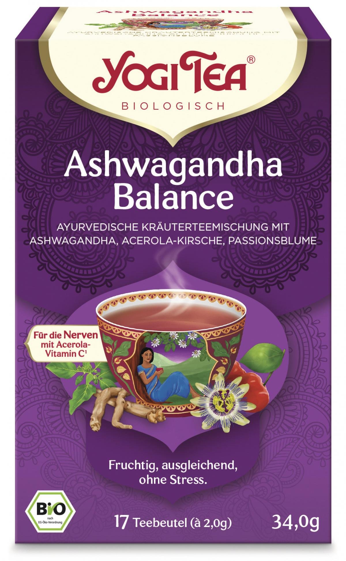 Getrockneter Acerolasaft* (14%), Hagebutte*, Zitronengras*, Pfefferminze*, Süßholz*, Hibiskus*, Ashwagandha* (6%), Apfel*, Passionsblume* (5%), Zitronenmelisse*, Aroniabeeren*, Zimt*, Orangenschalen*, Rote Bete*, süße Brombeerblätter*, Cranberries*, Orangenöl*, Zitronenöl*.