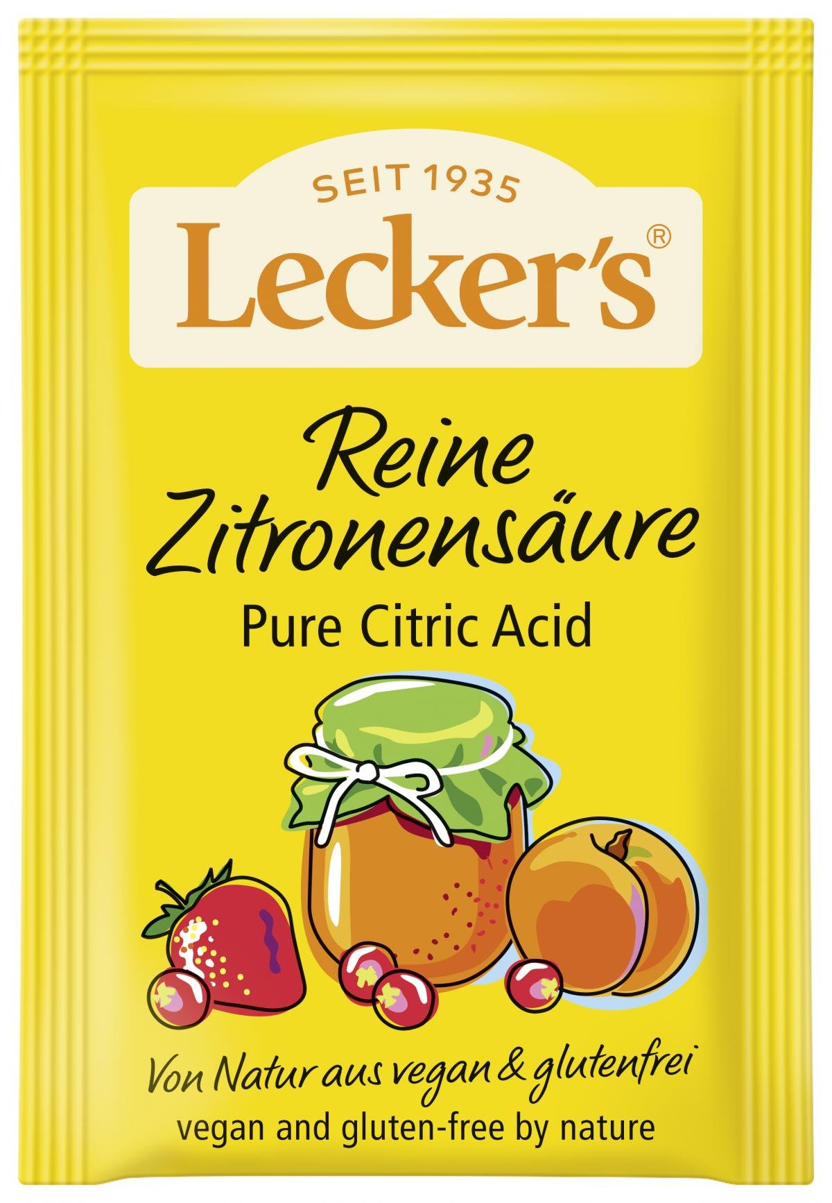 Lecker´s Reine Zitronensäure unterstreicht die natürliche Note Ihrer Fruchtzubereitung und unterstützt das Gelieren von Marmeladen und Konfitüren.